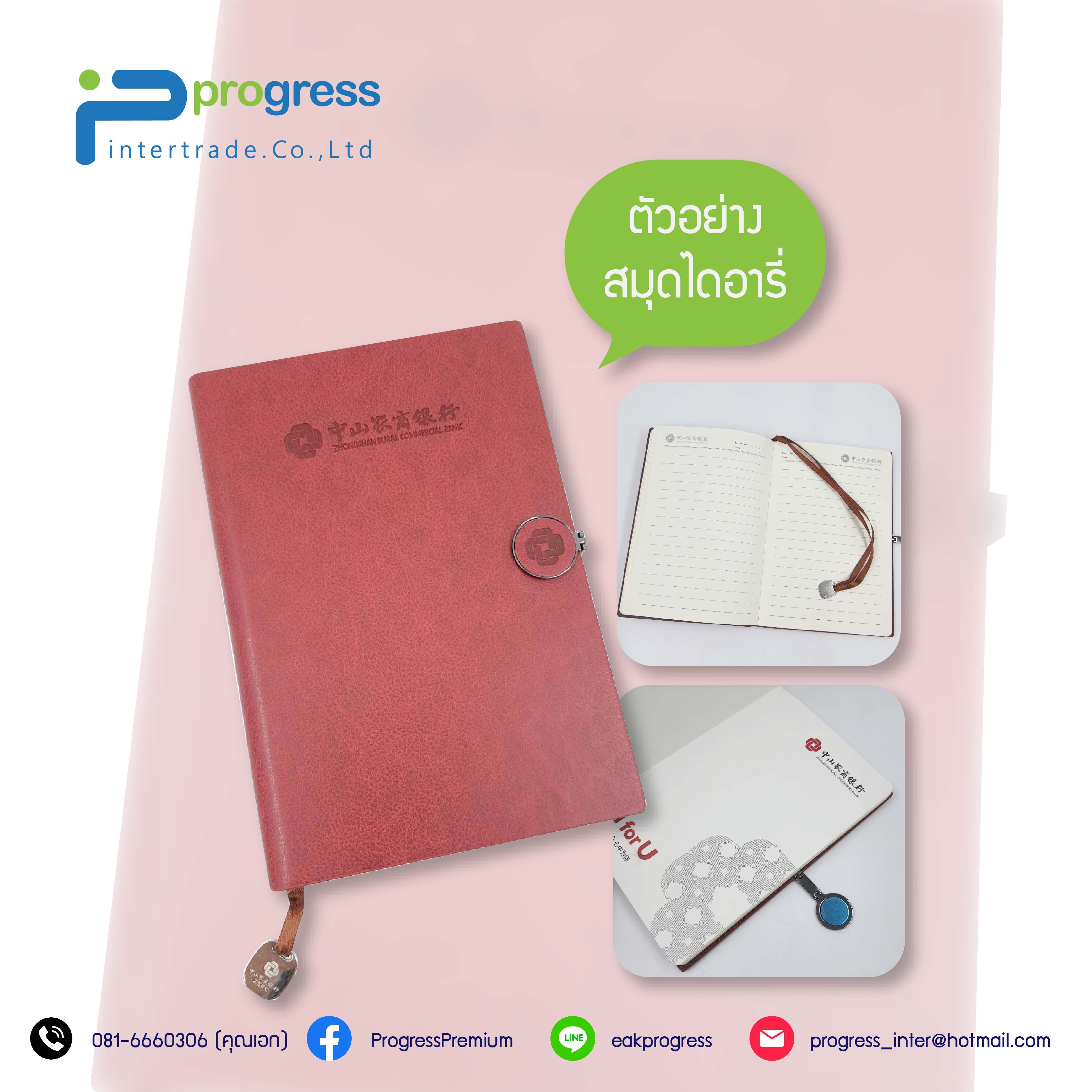 บริษัท โปรเกรส อินเตอร์เทรด จำกัด รับผลิต และนำเข้าสินค้าจากจีน สินค้าพรีเมี่ยม Gimmick Gift Souvenir ของขวัญ ทุกชนิด พร้อมสกรีนโลโก้ โดยมีหลายหมวดหมู่ เช่น อุปกรณ์บนโต๊ะสำนักงาน สินค้า IT สินค้า MADE TO ORDER เช่น กระเป๋า เสื้อ หมวก ร่มงานสิ่งพิมพ์ เช่น กระดาษโน๊ต กระดาษโพสอิส สมุดโน๊ต ทิชชู่กล่อง ม่านบังแดดรถยนต์ ออแกไนซ์เซอร์ Organizer นำเข้าจากโรงงานต่างประเทศโดยตรง ไม่ต้องกังวลว่าผ่านหลายต่อ ราคาถูก ยุติธรรมและส่งของตรงตามเวลาที่กำหนด โดยทาง เรือ และเครื่องบิน แบบด่วน 5 วัน และรับนำเข้าสินค้าจากประเทศจีน และรับงานสกรีนและยิงเลเซอร์ ทุกชนิด โดยช่างที่มีประสบการณ์ ในการสกรีน