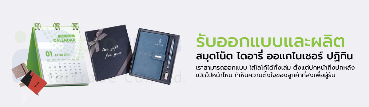 รับออกแบบและผลิตสมุด ผลิตปฏิทิน ไดอารี่ สมุดโน็ต ทุกรูปแบบ ไม่ว่าจะเป็นออกแบบเฉพาะหน้าปก ผลิตสมุดแบบหนังหุ้ม ปฏิทินตั้งโต๊ะแนวตั้งหรือแนวนอน มีรูปแบบสมุดหลากหลาย เช่น สมุดแบบห่วงกระดูงู สมุดปกหนัง สมุดปกแข็ง สมุดปกอ่อน กระดาษโน็ต Sticky Noted ทั้งเล่มใหญ่และเล่มเล็ก วาง Artwork ได้ทั้งปกหน้า เนื้อใน และปกหลัง ขึ้นงานตัวอย่างจริงให้ดูได้ เหมาะสำหรับเป็นของขวัญ ของที่ระลึกในวันสำคัญ
