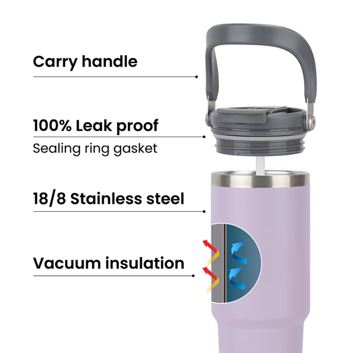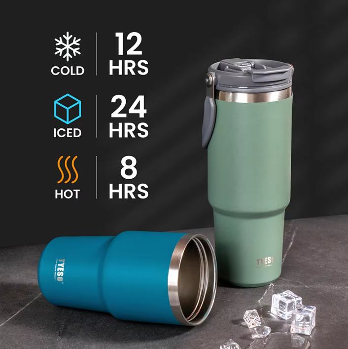 แก้วสแตนเลส Tyeso รุ่น TS-8826 ฝาหูหิ้วทรงโค้ง 30 ออนซ์/900 ml