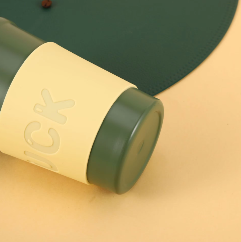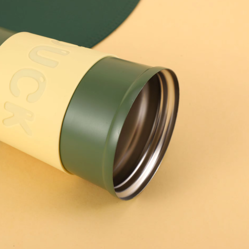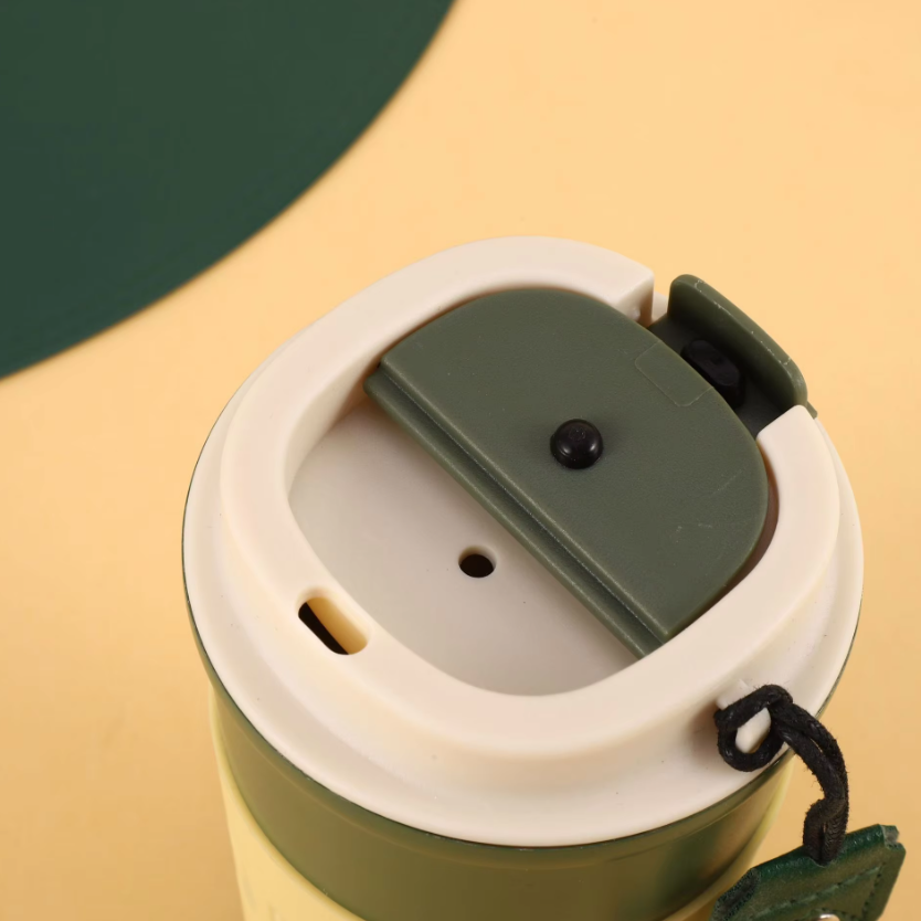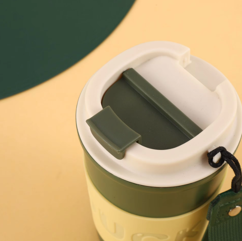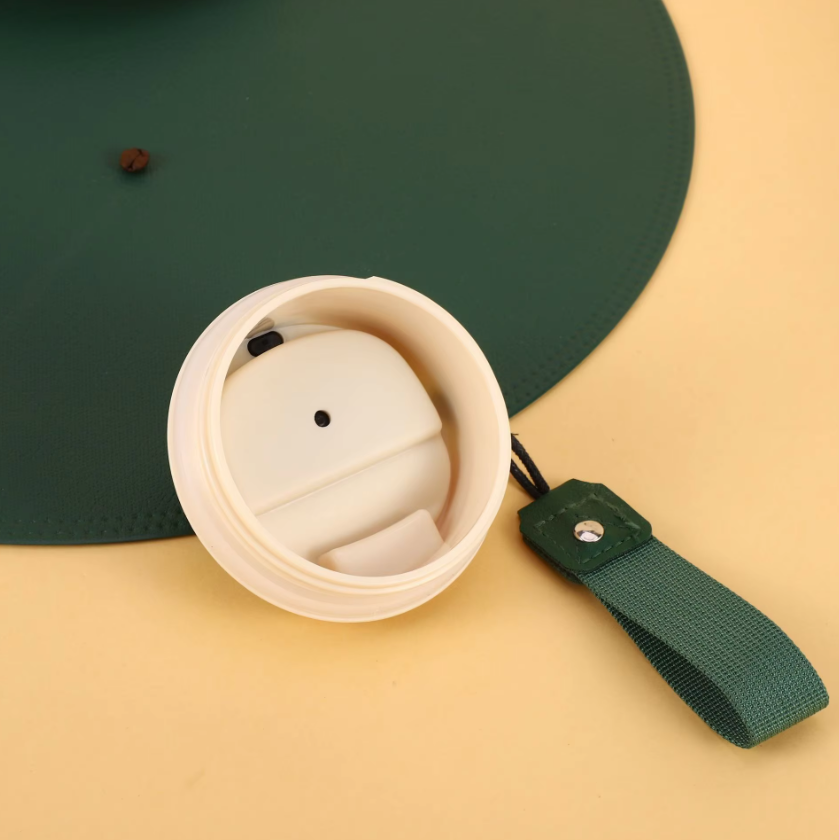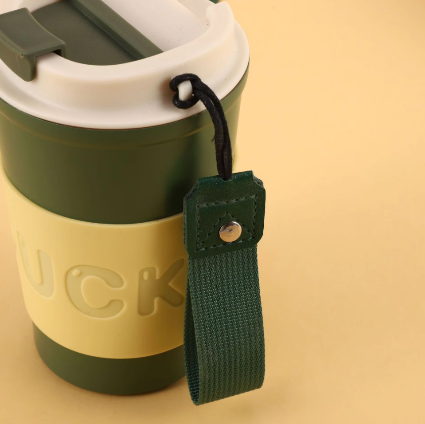 แก้วสแตนเลส ทรงกลมปากกว้างยางหุ้มซิลิโคน หูหิ้วไนล่อนพร้อมฝายกดื่ม 500ml