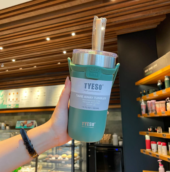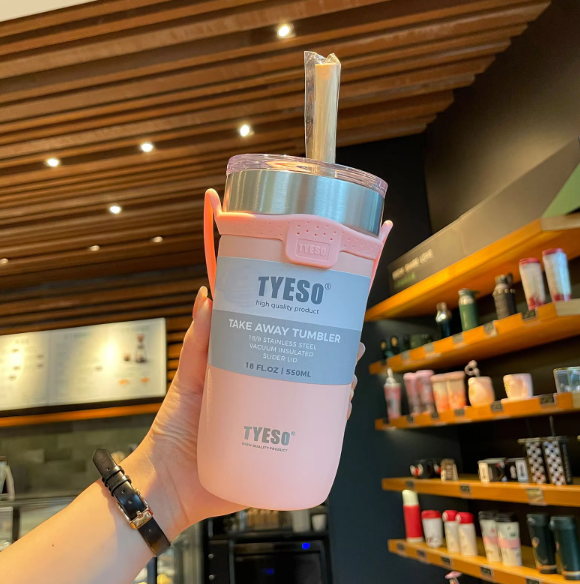 แก้วสแตนเลสขอบสแตนเลส พร้อมฝายกดื่ม 20 ออนซ์/600 ml
