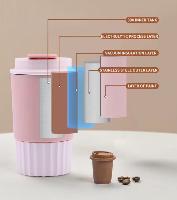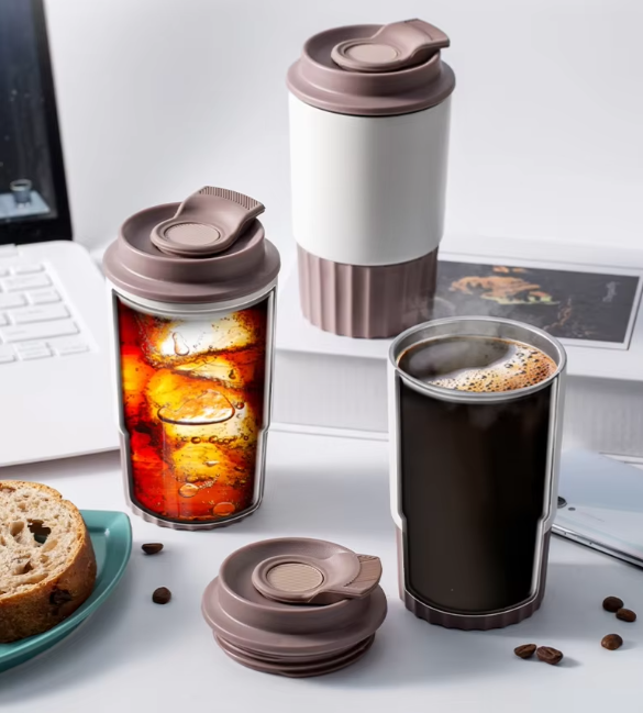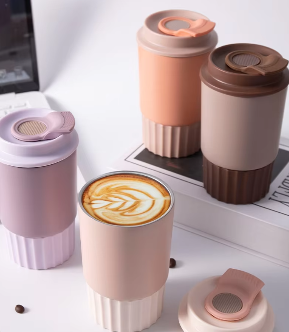 แก้วสแตนเลสทูโทน พร้อมฝายกดื่ม 360ml