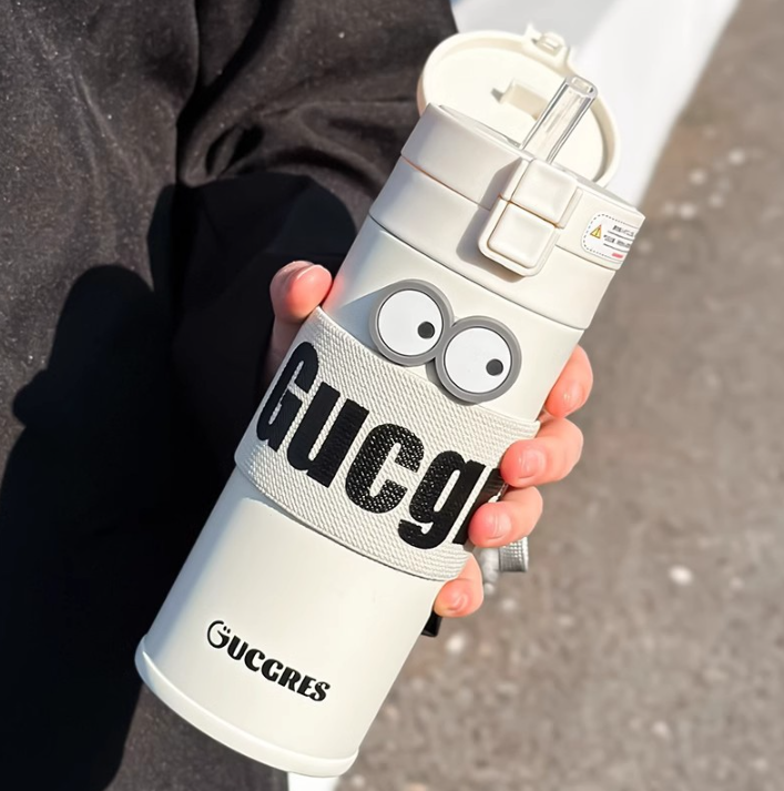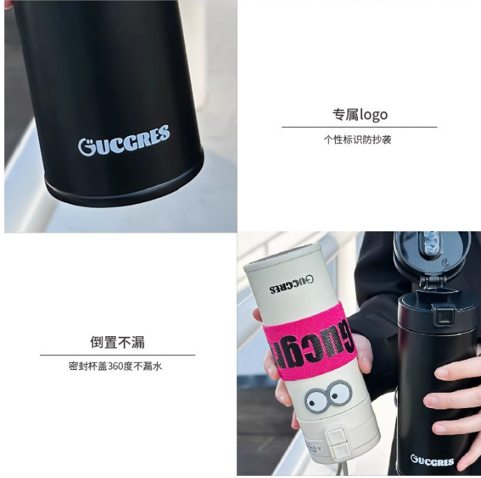 กระบอกสแตนเลส รุ่น XQ1213QQG ฝาสองชั้นกดเปิด พร้อมผ้ายืดหุ้มแก้ว ขนาด 450 ml
